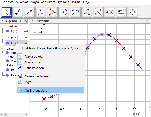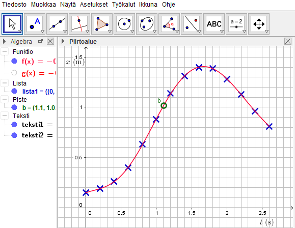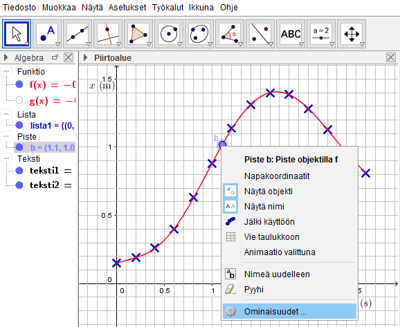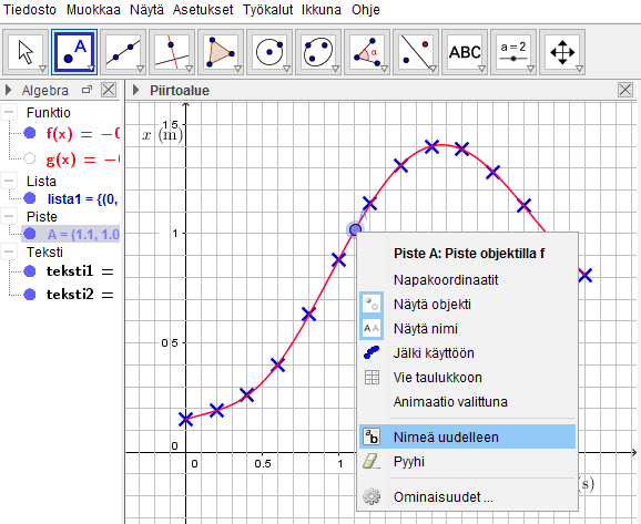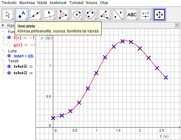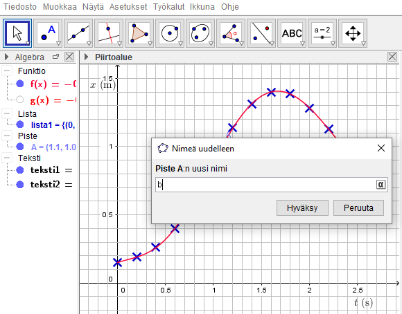 Siirrä piste oikeaan kohtaan joko hiirellä tai kirjoittamalla koordinaatti Algebra-ikkunassa.