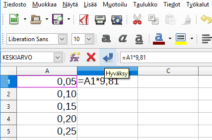Kaavan kirjoittaminen aloitetaan =-merkillä.