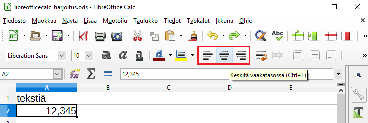 Tekstiä sisältävä solu määritellään tekstisoluksi, jossa sisältö tasataan vasemmalle.