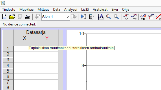 Sarakkeet nimetään kaksoisklikkaamalla sarakkeen tunnusta (X tai Y).