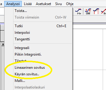 Kuvaajalta luetaan arvoja lisämällä työkalu valikosta Analysoi Interpoloi